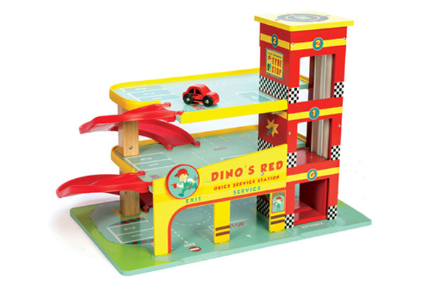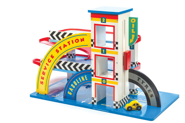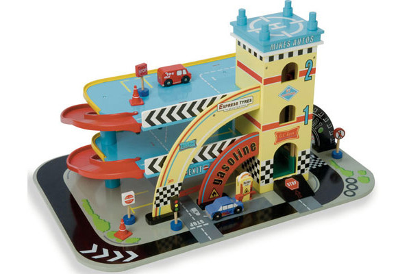 Le Grand garage is, zoals zijn naam al doet vermoeden, een grote speelgoedgarage met alles erop en eraan! Wat dacht u bijvoorbeeld van een echt helikopterplatform (met helikopter). Maar ook een autolift die met de hand bediend moet worden, meerder parkeerplekken, een autoservice en een tankstation. Veel speelplezier gewenst! Geschikt voor kinderen vanaf 3 jaar.
