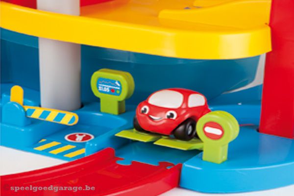 Mooie eerste speelgoedgarage. Ideaal voor hele jonge kinderen.